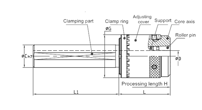 JC-WS series tools are suitable for machines with limited length and processing diameter is Φ3-14mm. When handle diameter at clamping part is large enough, as inner hole of handle is larger than rolling size, processing length will be of no limit.